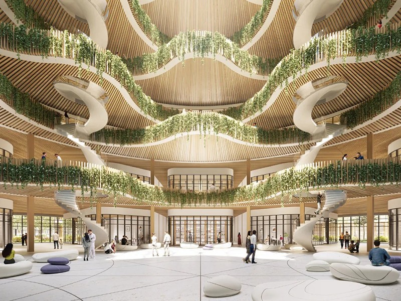 Vincent Callebaut 在比利時設計了一個生物親環(huán)境醫(yī)院園區(qū) HOSPIWOOD,旨在提高可持續(xù)性以及病人的就醫(yī)體驗和康復水平。該項目將當?shù)氐尼t(yī)院網(wǎng)絡集中在一個 14 公頃的園區(qū)內(nèi),旨在優(yōu)先考慮可持續(xù)發(fā)展并提供高質(zhì)量的醫(yī)療服務。HOSPIWOOD 是連接 Buset 和 Longtain 兩地的紐帶,位于東部城市大道沿線,可容納城市景觀中的各種功能,為城市的整體活力做出貢獻。HOSPIWOOD 項目的核心是致力于環(huán)境責任和社區(qū)福祉。該項目的總體規(guī)劃提倡高效的資源管理,將太陽能停車場、雨水收集系統(tǒng)和綠地等功能融入其中,以減輕對環(huán)境的影響,改善當?shù)氐纳鷳B(tài)系統(tǒng)。