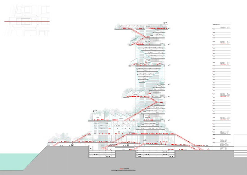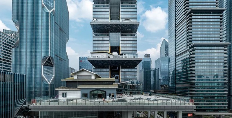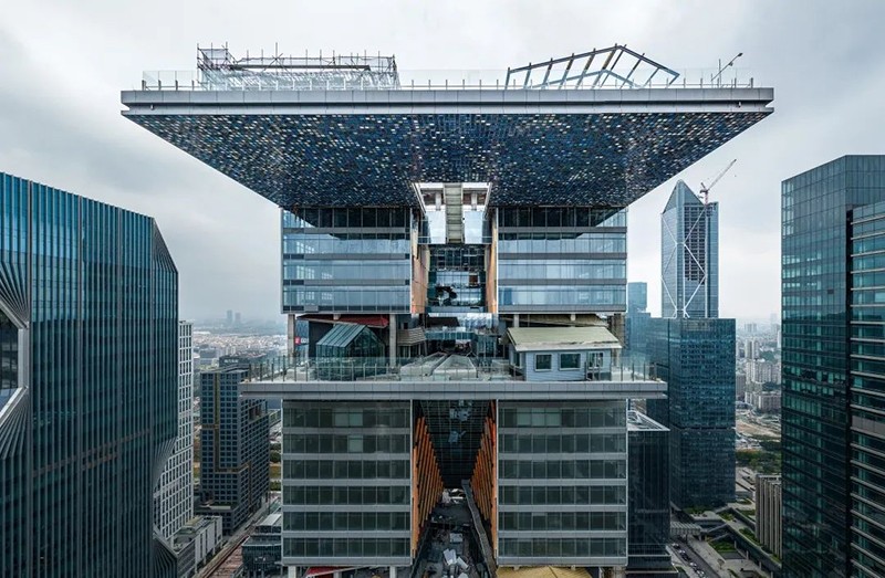 其標(biāo)志性設(shè)計(jì)包括4道單邊懸挑景觀平臺(tái),形似“火箭發(fā)射臺(tái)”,創(chuàng)下國(guó)內(nèi)超高層直挑結(jié)構(gòu)首例。