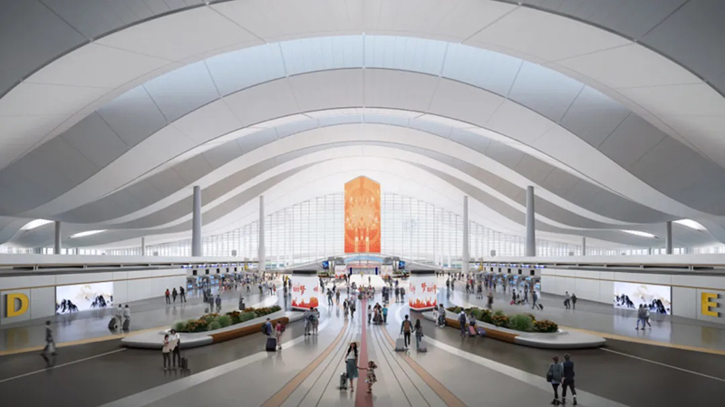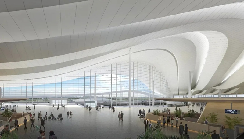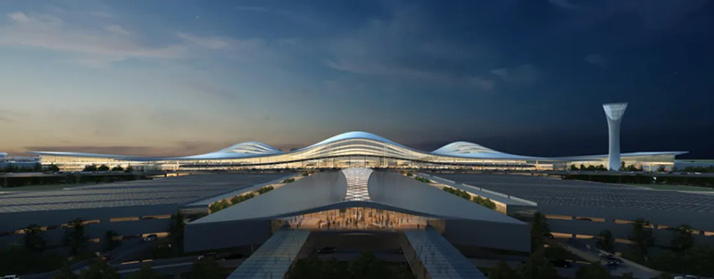 烏魯木齊天山國(guó)際機(jī)場(chǎng)的擴(kuò)建工程是國(guó)家“十三五”“十四五”重點(diǎn)建設(shè)項(xiàng)目,總投資約520億元,規(guī)劃建設(shè)兩條4F級(jí)跑道、50萬(wàn)平方米的T4航站樓、177個(gè)停機(jī)位及綜合交通中心等設(shè)施;航站區(qū)采用“主樓+三指廊”構(gòu)型,地上四層、地下一層,可容納年旅客吞吐量3500萬(wàn)人次,貨郵吞吐量55萬(wàn)噸
